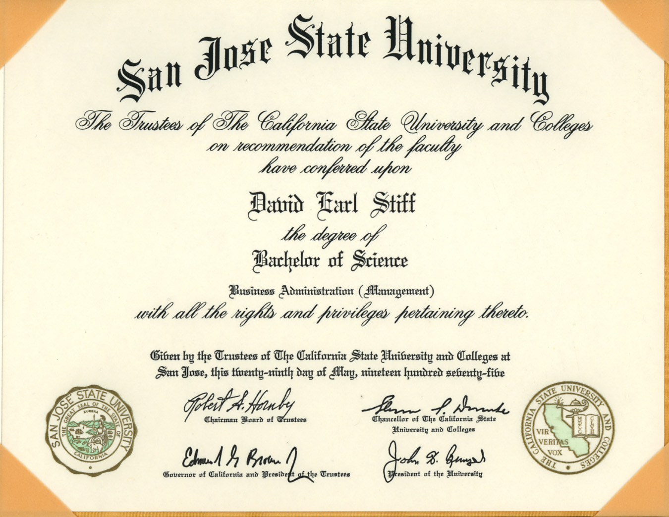 Dave worked on the first computer system (RCA AN/GKA-5) Dave moved to San Jose, California and began attending San Jose State University. Dave began his career in Computer Programming while working at TAB Products Company in Palo Alto Next, Dave worked for BRC in the IT department at the City of Santa Clara as a