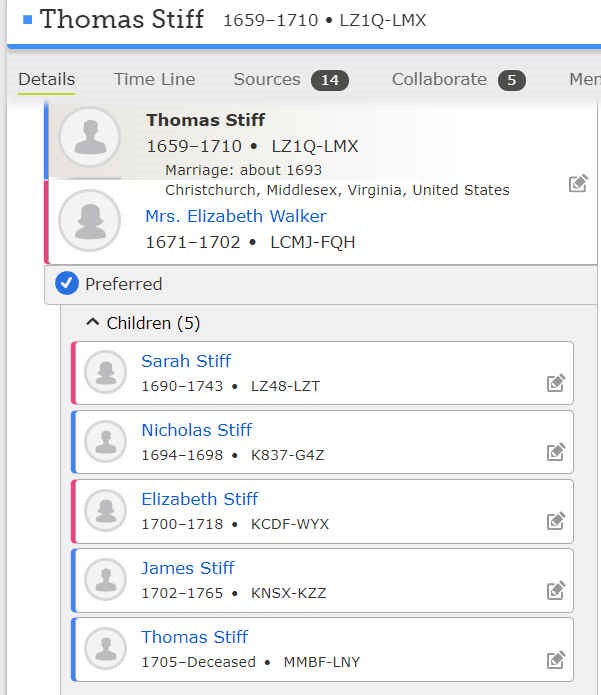 Sarah Salter (M: 1684) Elizabeth Walker (M:1693) |