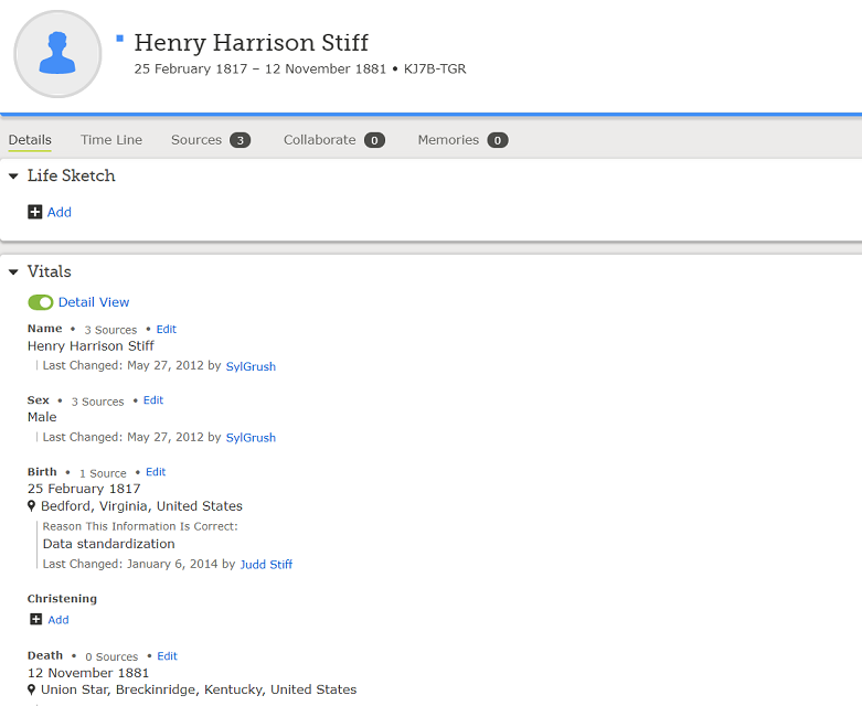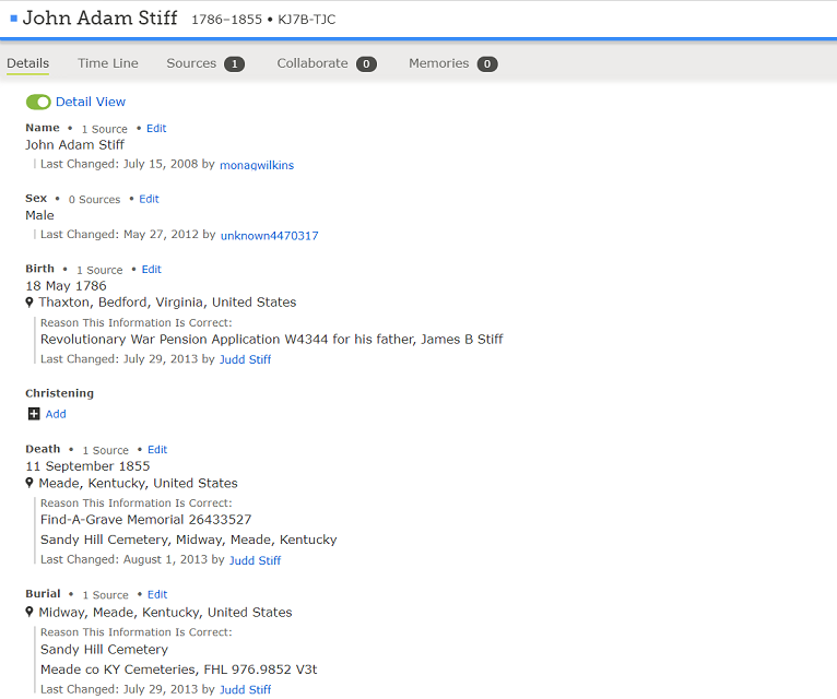 May 19, 1837 Stiff Cemetery #120 Thaxton, Bedford, VA |